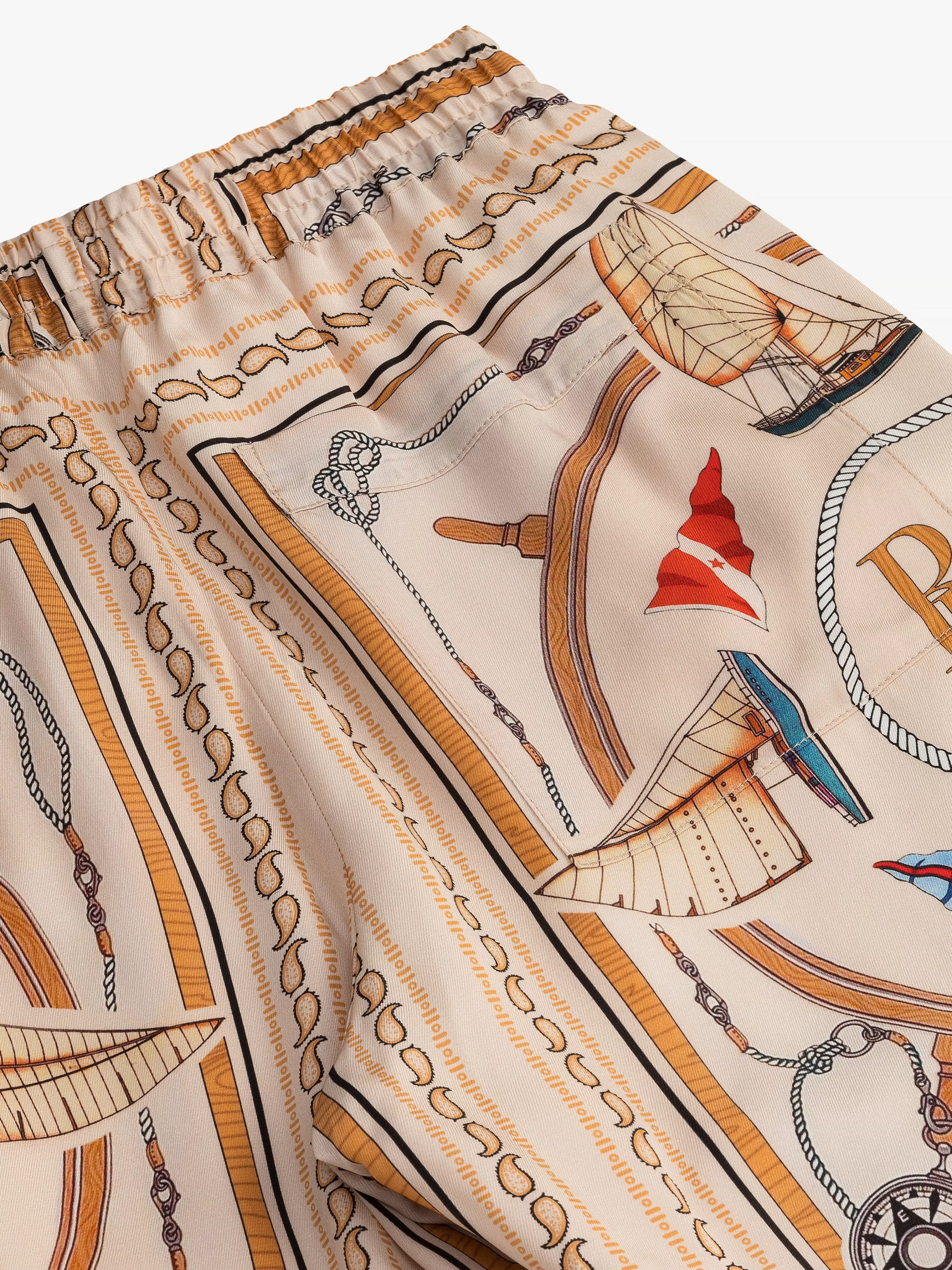 Premium silk shorts featuring Rhude nautical all over design, an elasticated waistband, twin side pockets, and a singular back pocket. Exaggerated front drawstrings in our signature mustard tone.100% SILKDry clean only.Standard fit. We recommend taking your standard size.
